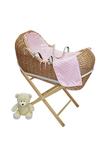 PRODUCT DESCRIPTIONS:Luxury walnut wicker pod with a super soft dimple fabric available in 4 colours. This basket has strong leather handles and is suitable from birth.